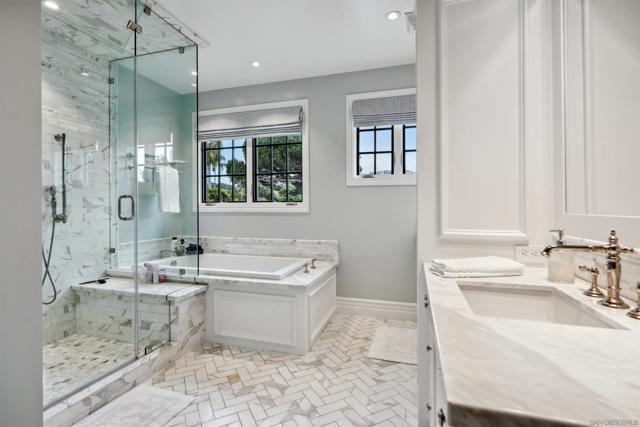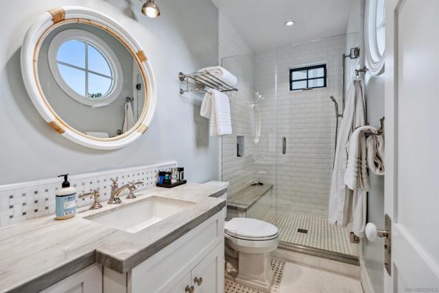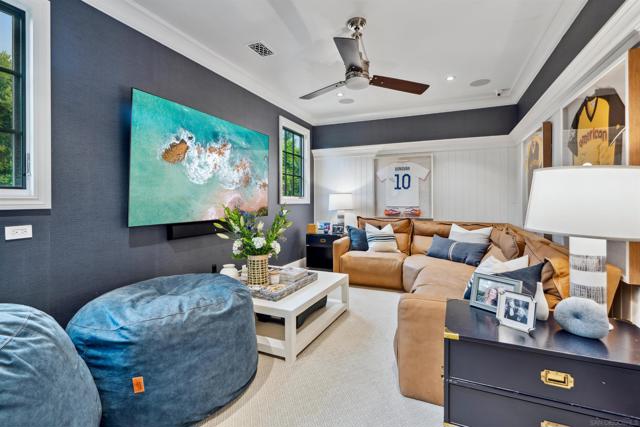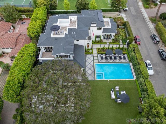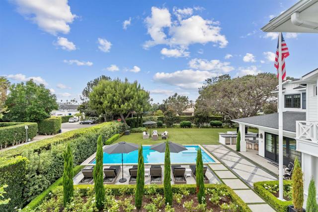 Experience coastal elegance at its finest in this Hamptons-inspired retreat nestled in the heart of La Jolla Shores. Spanning 5,250 sq. ft. on a nearly quarter-acre lot, this luxurious home features five spacious bedrooms, five full bathrooms, and three refined half baths. Seamlessly blending timeless East Coast charm with relaxed West Coast living, the open-concept design invites sunlight and effortless indoor-outdoor flow. Step outside to your private oasis, complete with a shimmering pool, spa, and expansive entertainment areas perfect for alfresco gatherings. The crowning jewel is the rooftop deck, where ocean views and salty breezes set the stage for unforgettable sunsets. Just a short walk from the renowned La Jolla Beach and Tennis Club, this exceptional residence places you moments from pristine beaches and premier amenities. Discover the perfect balance of sophistication and serenity in this La Jolla Shores masterpiece.